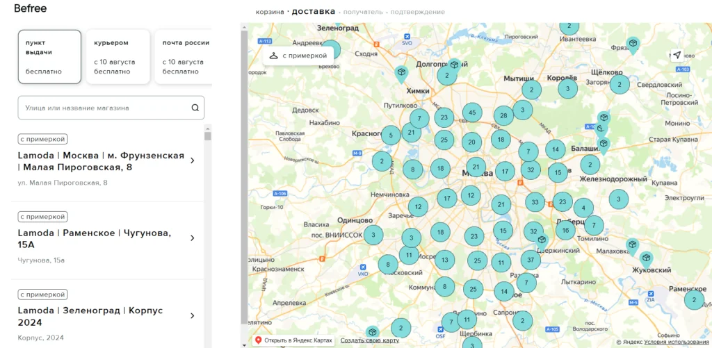 Шаг №6 – Находим свой магазин, если захотите получить вещь бесплатно в пункте выдачи, либо ознакомьтесь со сроками доставки по Почте России или курьером.