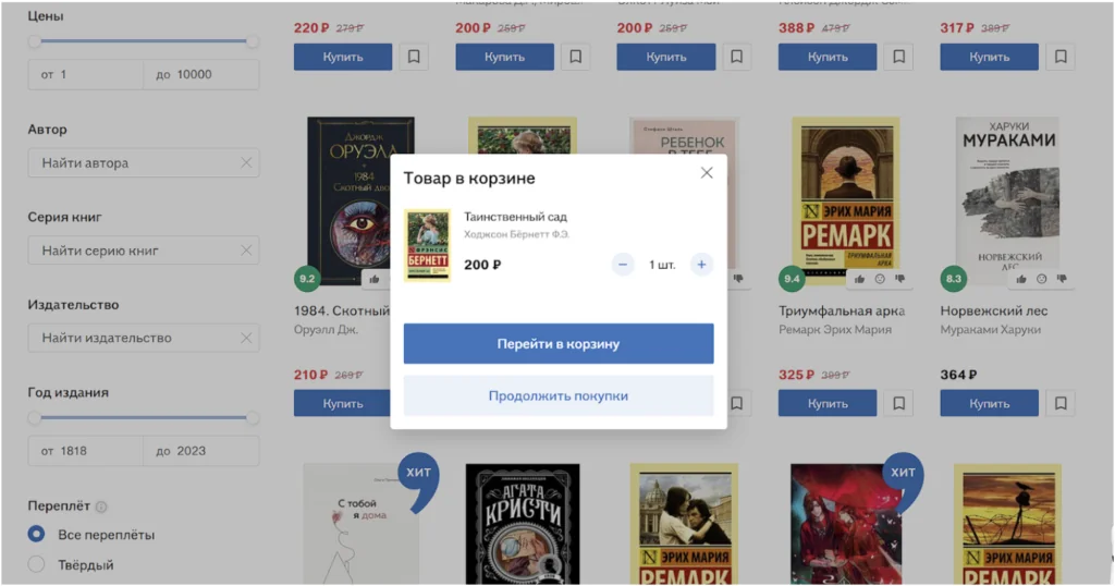 - Перейдите в корзину, чтобы продолжить оформление заказа.