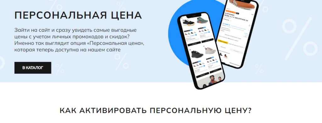 Однако для выгоды клиентов магазин предлагает не только бонусную программу. Постоянный покупатель может подключить такую полезную опцию, как Персональная цена. Ей можно воспользоваться для выбора максимально выгодного предложения, которое складывается из вашей собственной личной скидки с учетом всех кодов и акций. Персональная цена представляет собой особенную программу лояльности для зарегистрированных пользователей сайта.
