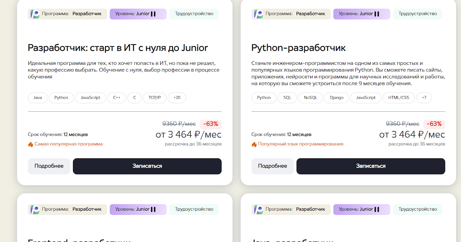 - Выберите подходящую программу обучения и нажмите “Записаться”.