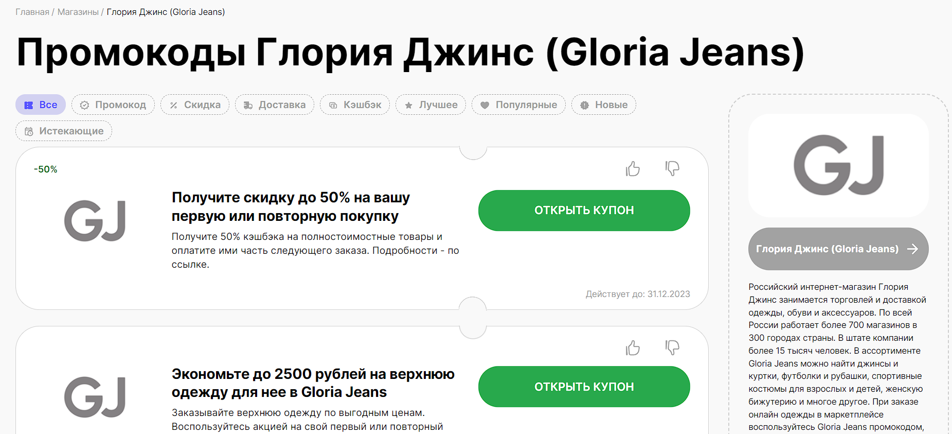 Как использовать купон и промокод Глория Джинс