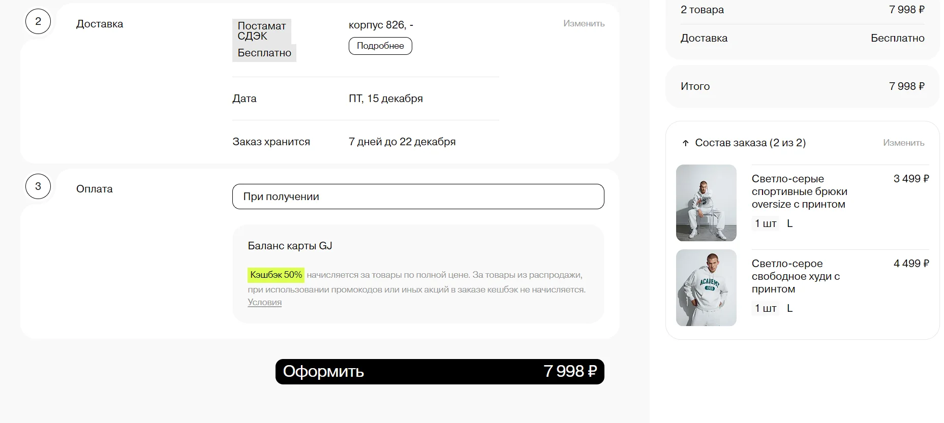 5. Вам останется только оформить вашу заявку. Для этого укажите способ доставки и выберите вариант оплаты. Компания GJ предлагает своим пользователям возможность оплачивать покупки в рассрочку. Данная услуга позволяет разбить платеж на 4 равные части и вносить их с промежутком в две недели.