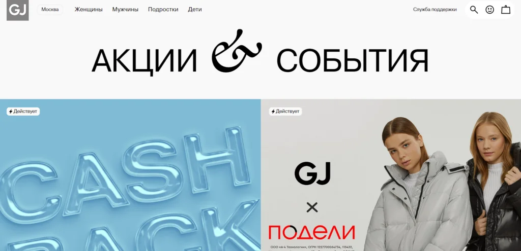 - Акций. Глория Джинс проводит промоакции, в рамках которых можно получить дисконт, повышенный кешбэк, подарки и другие бонусы.
