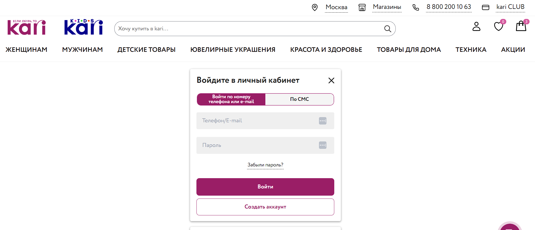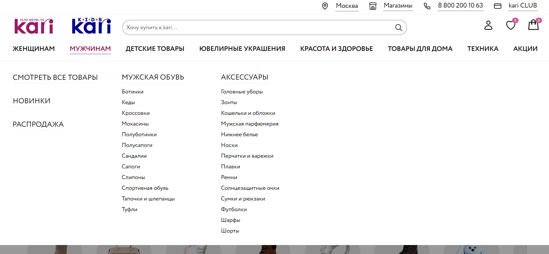 - программа лояльности Kari Club – участники бонусной программы получают баллы за покупки, которыми можно оплачивать заказы;