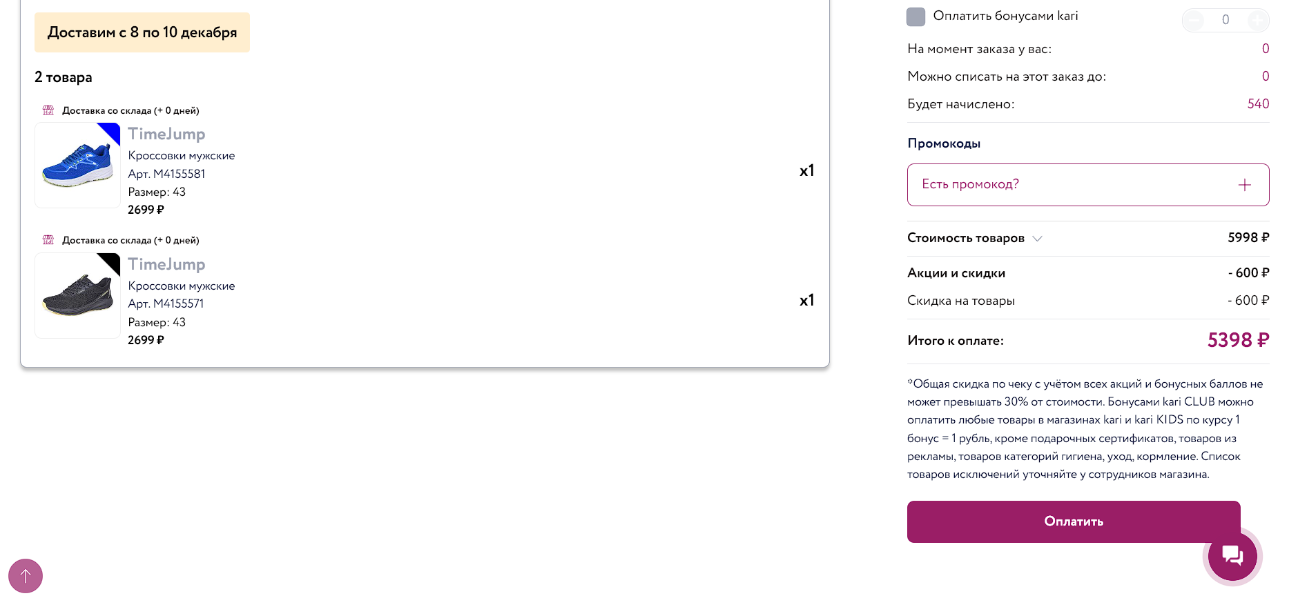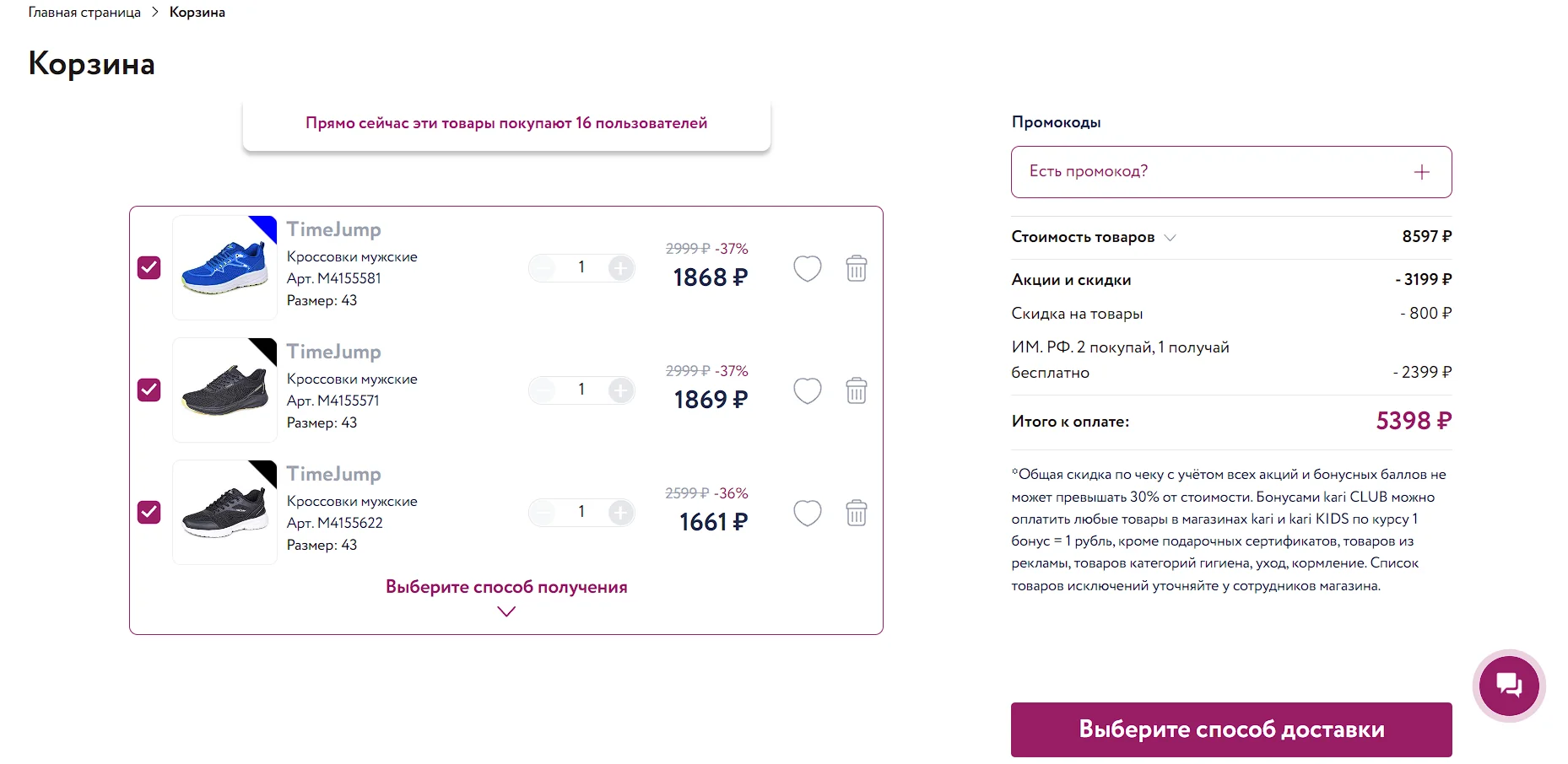- Зайдите на сайт Kari и положите в корзину интересующий товар.