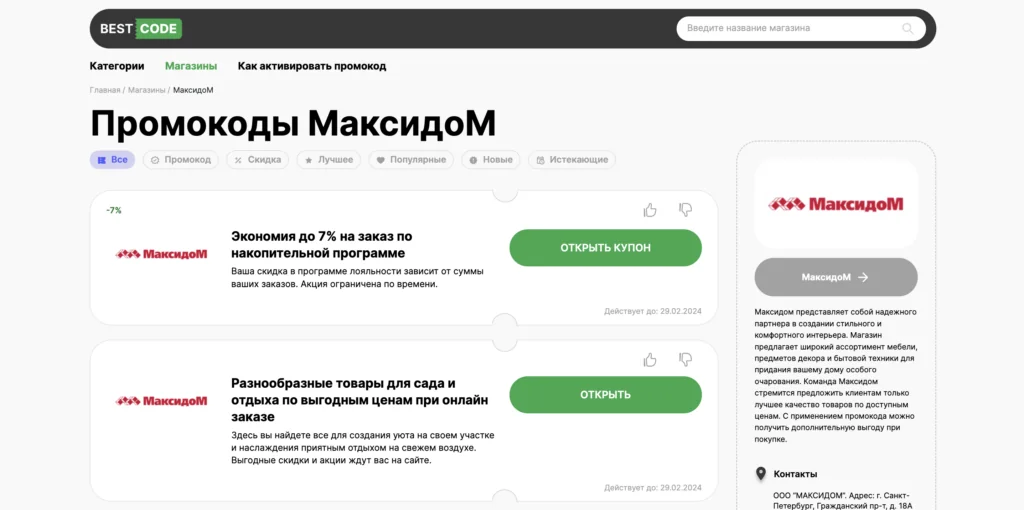 Промокоды сайтов, похожих на МаксидоМ