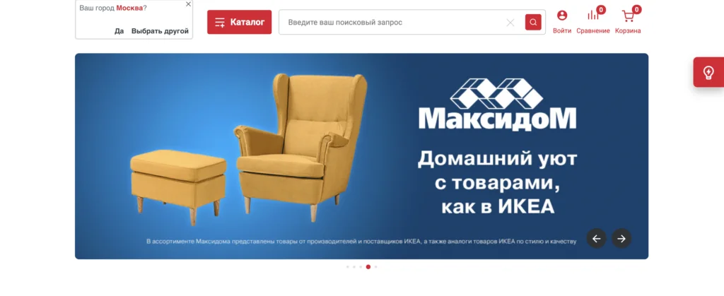 Ассортимент компании Максидом включает сантехнику, мебель, электронику, строительные товары, ручной и электрический инструмент, товары для декора и интерьера и многое другое. Покупатели имеют возможность выбрать подходящие позиции в одном из классических магазинов или приобрести их онлайн. Магазин осуществляет доставку заказов, сделанных через интернет. Курьерская служба гипермаркета может доставить их сразу же в день покупки.