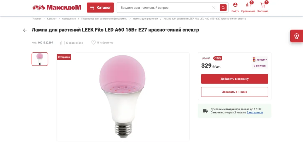 2. Откройте сайт ритейлера, перейдите в нужный раздел каталога и положите товары в корзину.