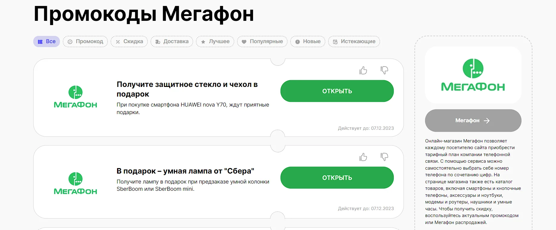 Все актуальные спецпредложения и подарки от интернет-магазина "Мегафон" в одном месте. Воспользуйтесь скидкой на сайте.