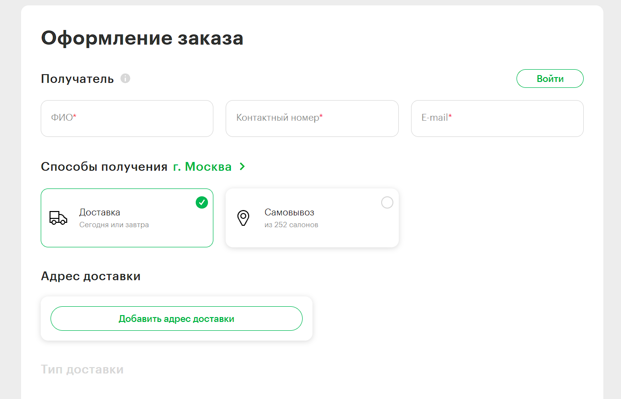 - Определитесь с типом доставки, видом оплаты и завершите оформление заказа.