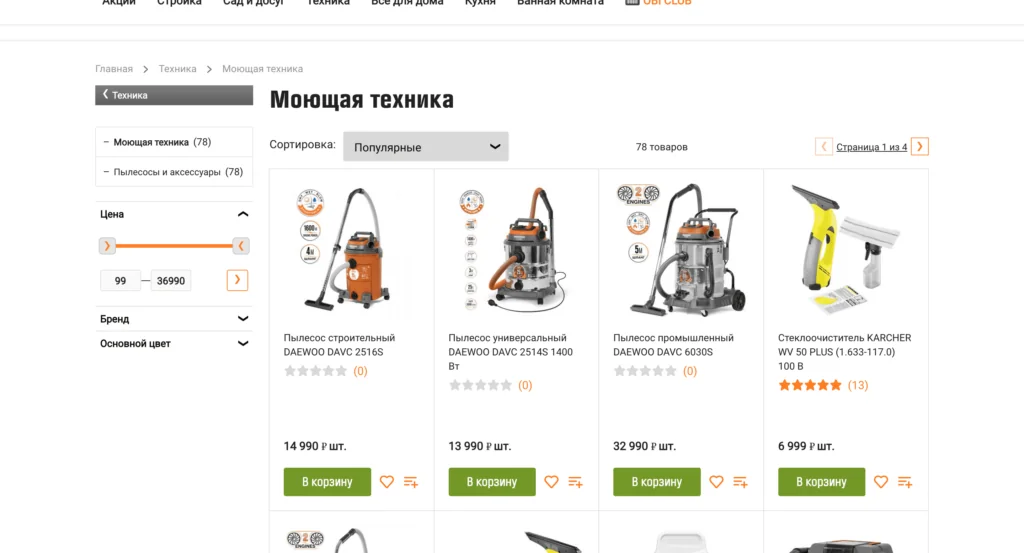 ОБИ напрямую сотрудничает с крупнейшими производителями, что позволяет предлагать клиентам низкие цены. Здесь выгодно можно купить строительные материалы, сантехнику, светильники, бытовые и хозяйственные товары, электроинструмент, мойки и смесители для кухни, оборудование для ванной комнаты, саженцы и много другое. Для дополнительной экономии можно использовать специальные условия:
