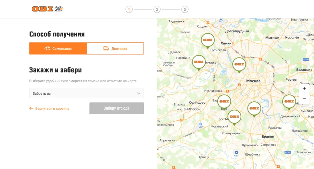 4. Нажмите на кнопку «Оформить заказ». Выберите способ получения товаров. Вы можете забрать их из магазина самостоятельно или воспользоваться доставкой.