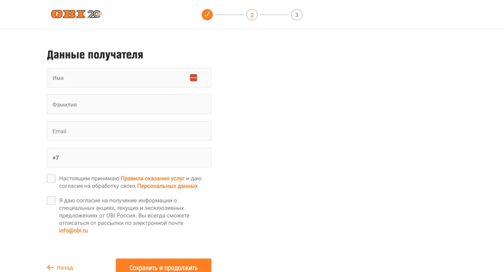 5. Заполните анкетные данные. Введите свое имя и фамилию, адрес электронной почты и контактный телефон.