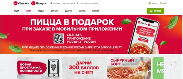 - Акции. На сайте пиццерии есть раздел «Акции», в котором регулярно появляются выгодные предложения: пицца бесплатно при заказе от определенной суммы, скидки.