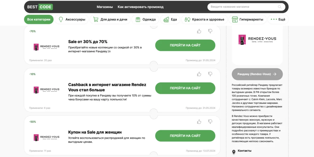 Промокоды сайтов, похожих на Рандеву (Rendez-Vous)