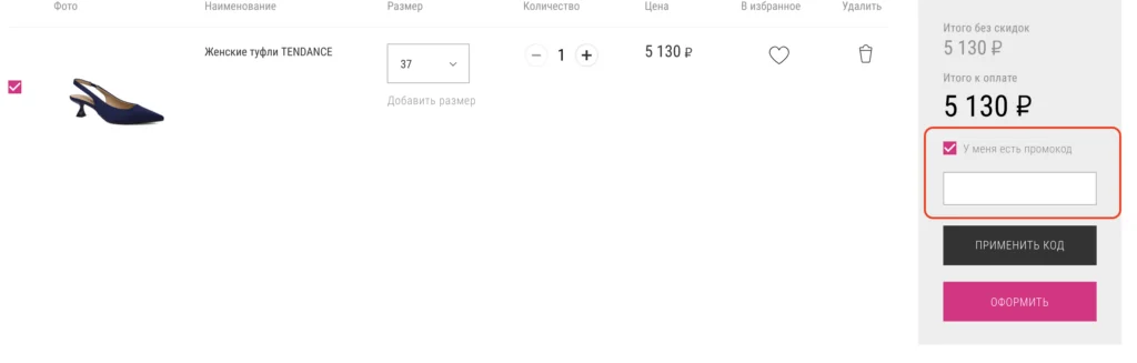 - покупка по коду – ввод на сайте магазина специальной комбинации цифр и букв, которая активирует скидку. Это может быть не только процент от стоимости товара, но и дополнительный подарок, например, средства ухода при приобретении обуви или же бесплатная доставка. Суть спецпредложения отражена в названии кода;