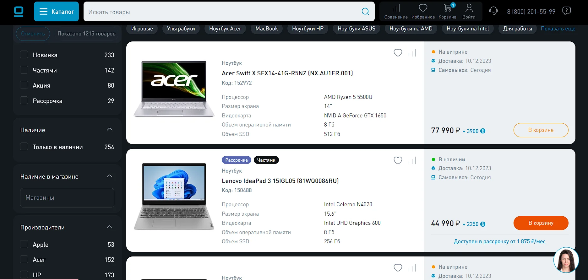 - рассрочка и кредит – товар можно приобрести с помощью процедуры кредитования и оплатой несколькими частями;