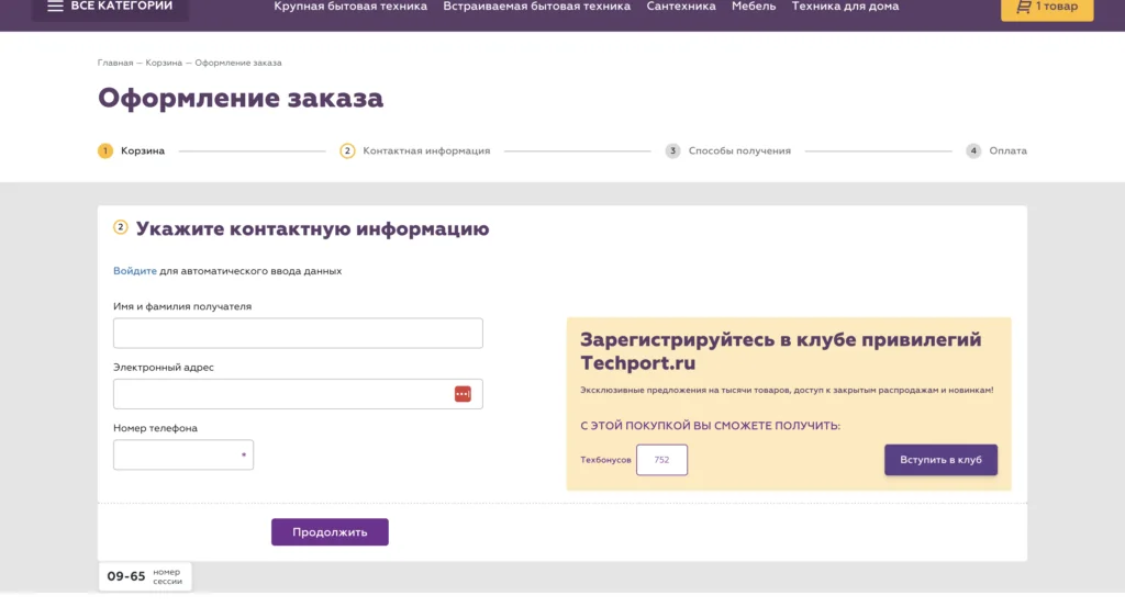 2. Откройте сайт Techport, перейдите в каталог и выберите нужные товары. Добавьте их в корзину.