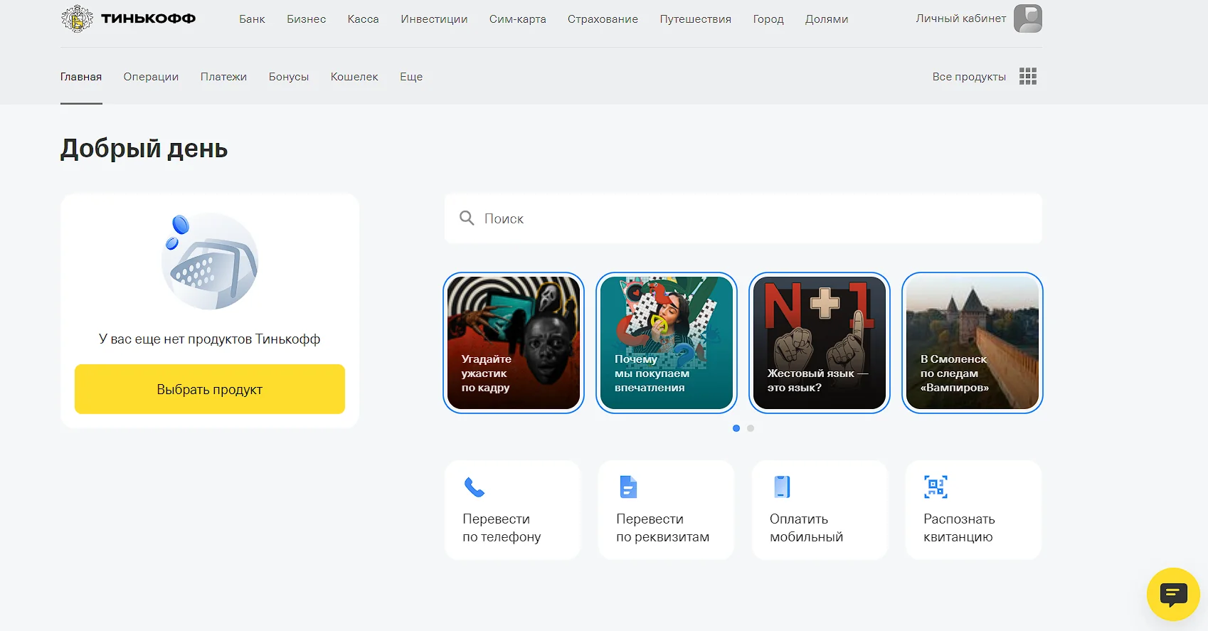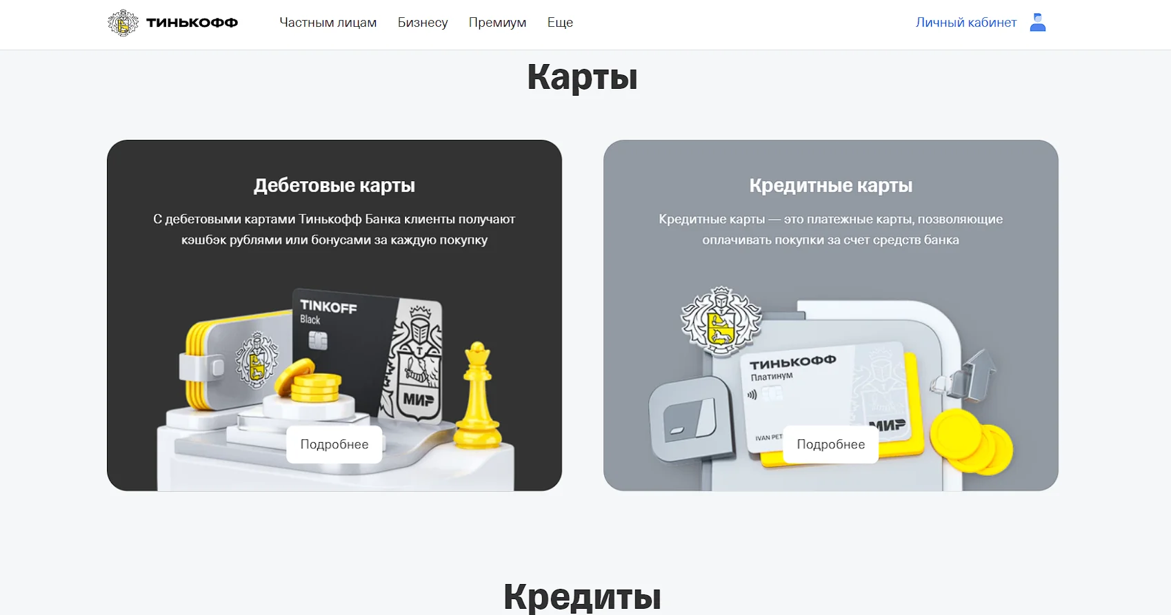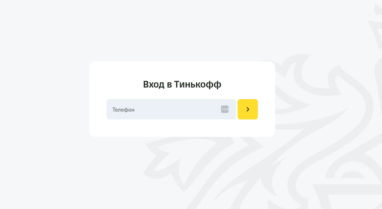 - Перейдите на сайт Tinkoff и пройдите авторизацию.