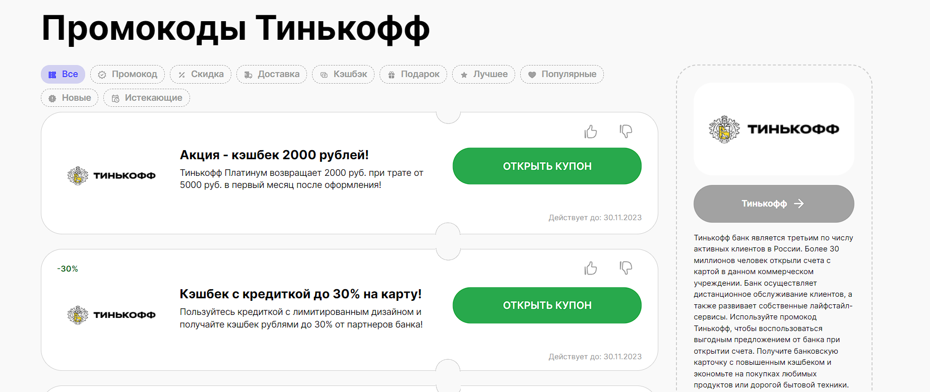 Промокоды сайтов, похожих на Тинькофф