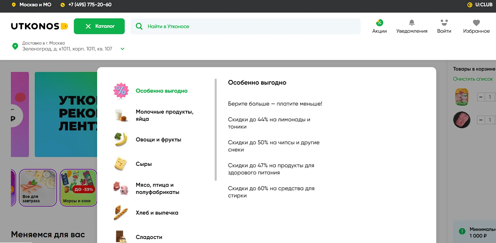 - раздел «Особенно выгодно» – отдельная рубрика магазина, где собраны товары по сниженной цене;